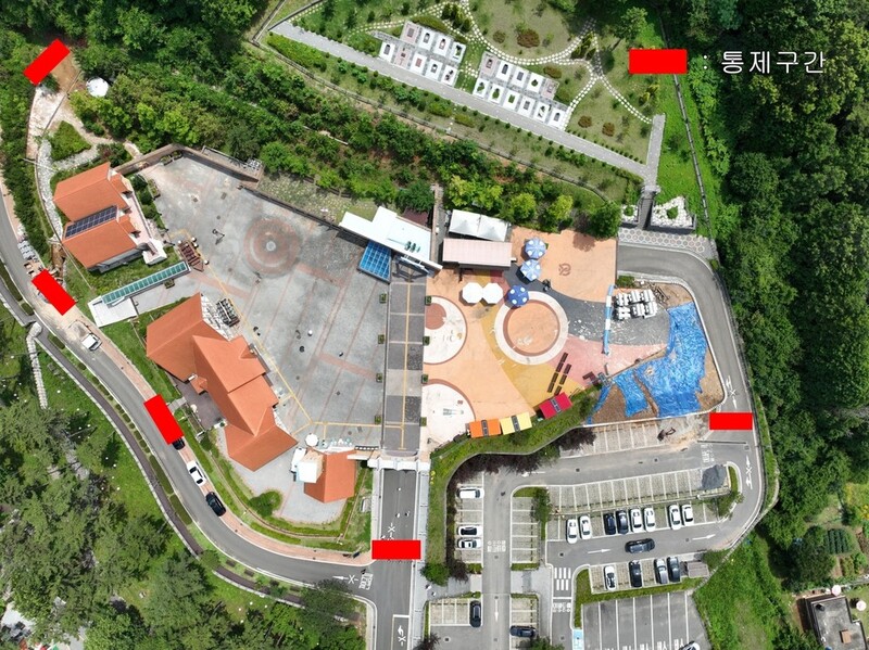 독일 파견 전시관, 기념품 판매점 등 광장 시설물은 이용할 수 없다.