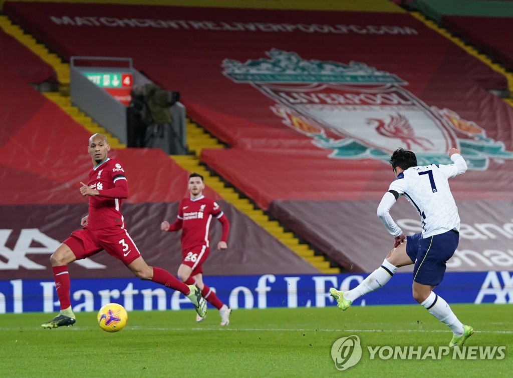 손흥민은 17일 오전 (한국시간) 영국 리버풀의 안필드에서 열린 리버풀과의 2020-2021시즌 잉글랜드 프로축구 프리미어리그 13라운드 원정 경기에서 토트넘이 0-1로 뒤진 전반 33분 동점골을 넣었다.