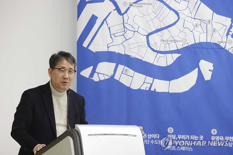 | ▲ 인사말하는 박양우 대표이사 (서울=연합뉴스) 강민지 기자 = 박양우 광주비엔날레 대표이사가 31일 서울 종로구 예술가의집에서 열린 '2024 베니스비엔날레 제60회 미술전 연계 한국미술 공동기자간담회'에서 인사말을 하고 있다. 2024.1.31 mjkang@yna.co.kr |