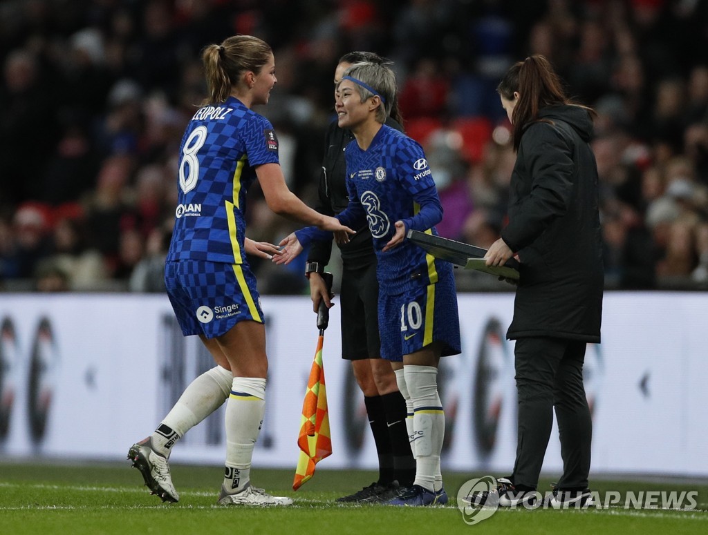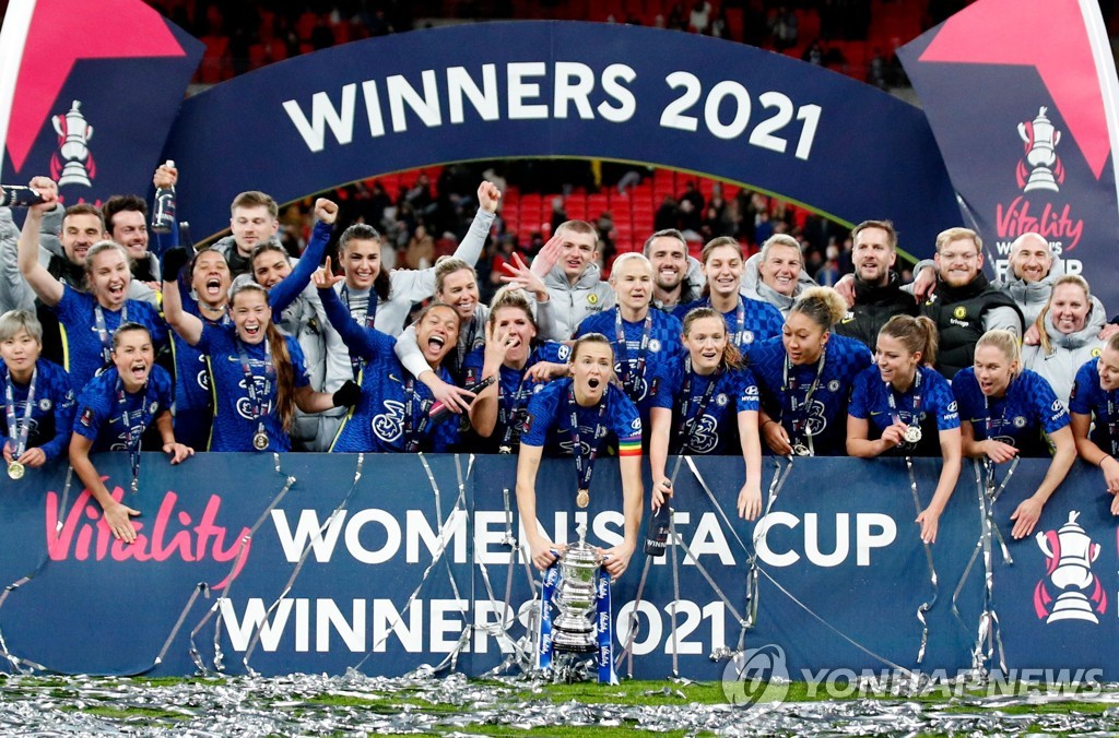 (서울=연합뉴스) 최송아 기자 = 한국 여자 축구의 '에이스' 지소연(30)이 뛰는 첼시 위민이 여자 잉글랜드축구협회(FA)컵 우승을 차지했다.