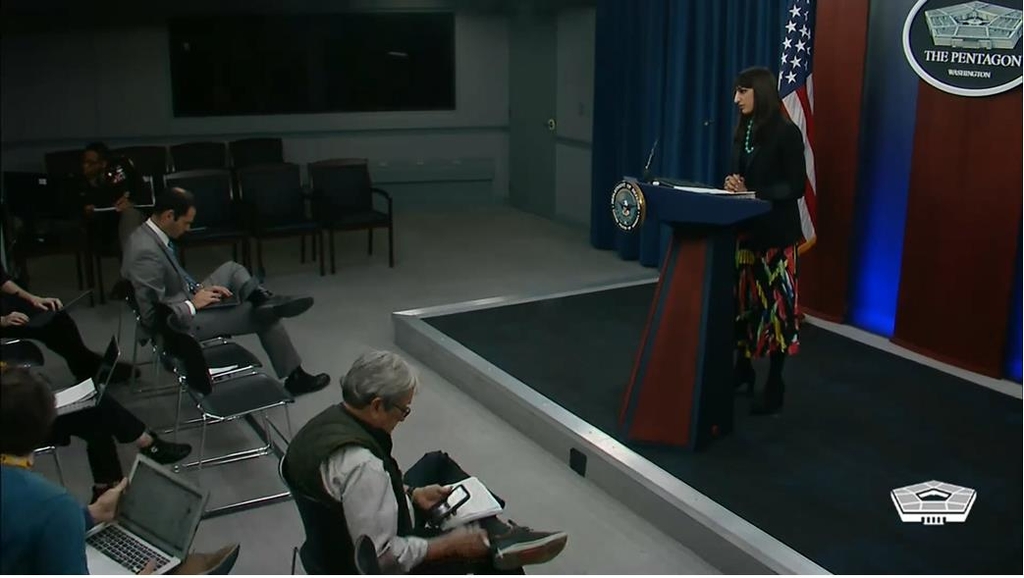 | ▲ Sabrina Sing (R, at podium), deputy press secretary of the U.S. Department of Defense, is seen taking a question during a daily press briefing at the Pentagon in Washington on Nov. 22, 2022 in this image captured from the department's website. (Yonhap) |