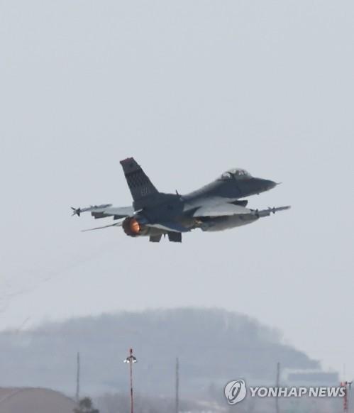 | ▲ An F-16 fighter of the U.S. Air Force takes off at Osan Air Base in Pyeongtaek, 65 kilometers south of Seoul, on Feb. 20, 2023, after North Korea launched two short-range ballistic missiles toward the East Sea from the Sukchon area in South Pyongan Province earlier in the day. (Yonhap) |