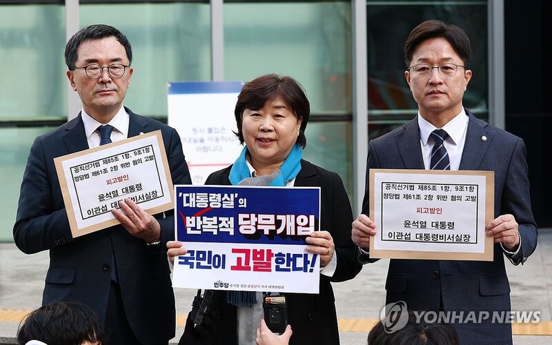 DP lawmakers file complaint against Yoon to police over alleged interfering in politics
