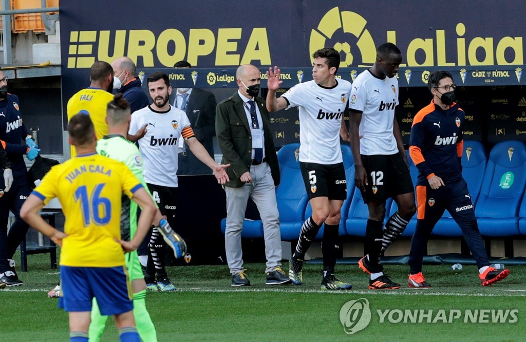 발렌시아는 이날 후반 43분 카디스의 마르코스 마우로에게 결승골을 내주고 1-2로 졌다.