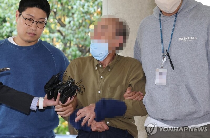 | ▲ A man in his 70s attends an arrest warrant hearing held at the Seoul Western District Court on charges of stabbing two police officers on-duty in front of the presidential office, in this file photo taken on Nov. 22, 2023. (Yonhap) |