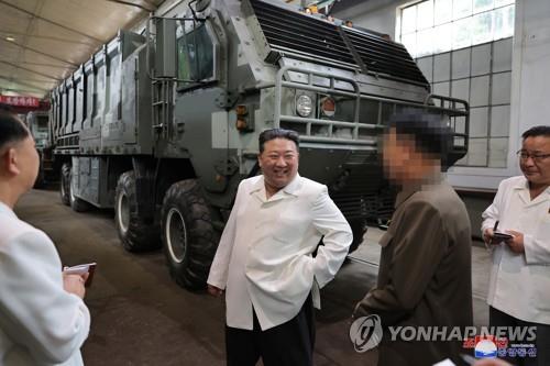 | ▲ This file photo, carried by the North's Korean Central News Agency on Aug. 14, 2023, shows North Korean leader Kim Jong-un (2nd from L) visiting an arms factory the week before. (For Use Only in the Republic of Korea. No Redistribution) (Yonhap) |
