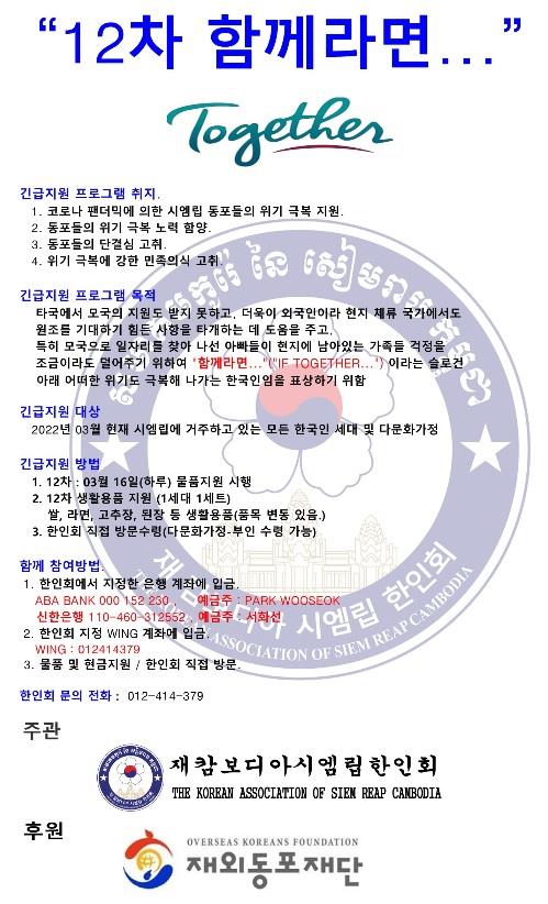 | ▲ 12차 '함께라면' 프로젝트 홍보 포스터 [캄보디아 한인회 제공] |