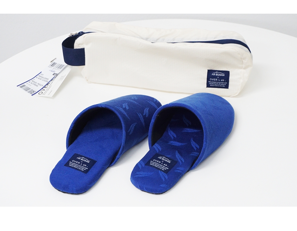 에어부산은 폐기 예정인 항공기 좌석 커버로 제작한 슬리퍼와 협업 업체에서 수거한 패러글라이더로 만든 트래블 파우치를 판매한다고 9일 밝혔다.