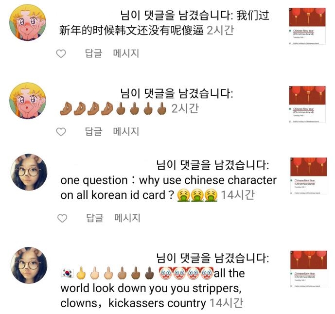 | ▲ '음력 설' 표기 캠페인에 악플로 방해하는 중국 누리꾼들 [서경덕 교수 제공] |