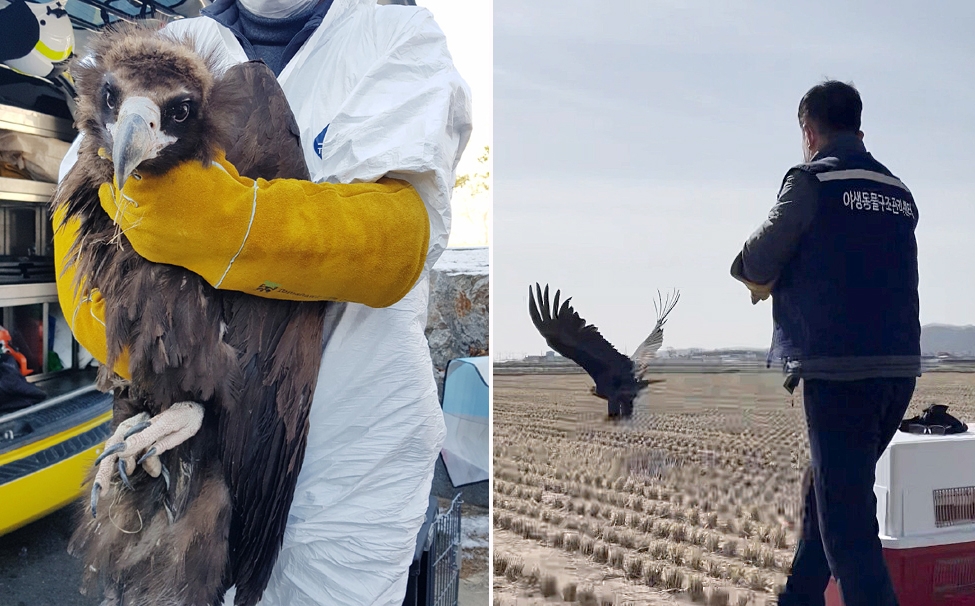 | ▲ 농약에 중독된 독수리(왼쪽)와 치료 후 방생 모습 [인천시 야생동물구조관리센터 제공. 재판매 및 DB 금지] |