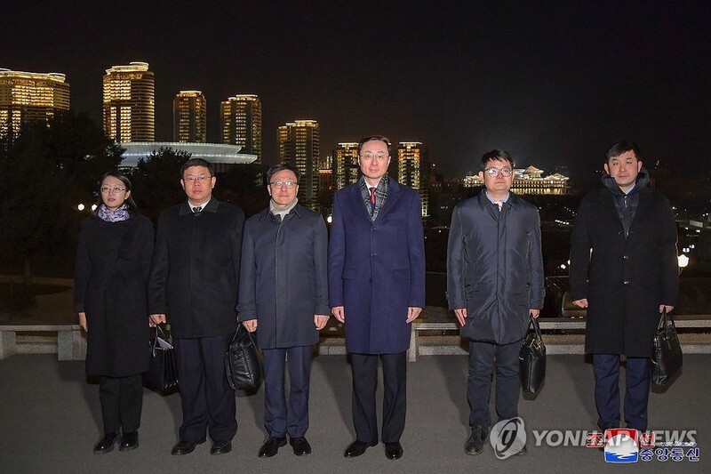 | ▲ This photo, carried by North Korea's official Korean Central News Agency on Jan. 26, 2024, shows Chinese Vice Foreign Minister Sun Weidong (C) and his delegation of Chinese diplomats visiting Pyongyang. (For Use Only in the Republic of Korea. No Redistribution) (Yonhap) |