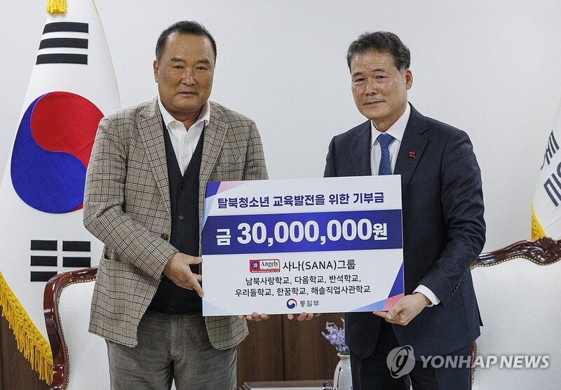 Kim thanked Choi for his donation and said the ministry plans to collaborate with more companies to provide better job opportunities for North Korean defectors.