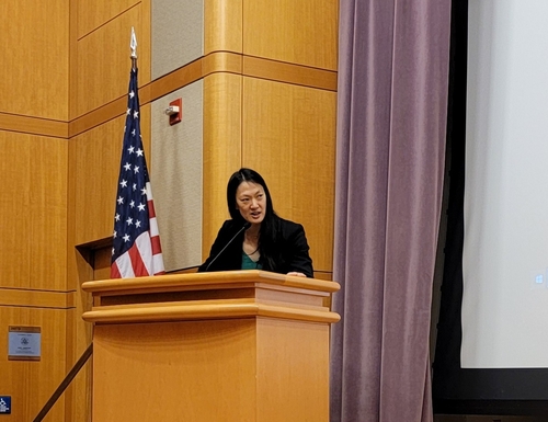 ▲ Ambassador Julie Turner, U.S. special envoy for North Korean human rights, speaks before the screening of "Beyond Utopia," an Oscar short-listed film on North Korean defectors, at the State Department on Jan. 19, 2024. (Yonhap)