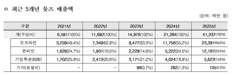 작년 '뮷즈' 매출을 보면 오프라인 즉, 상품관 매출이 약 233억9천100만원으로 절반 이상(56.6%)을 차지했다. 온라인 매출은 약 121억8천700만원으로 집계됐다.