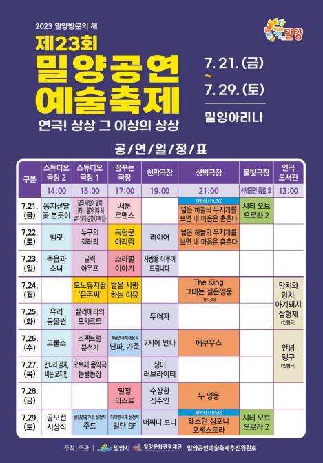 | ▲ 제23회 밀양공연예술축제 일정표 [밀양시 제공. 재판매 및 DB 금지] |