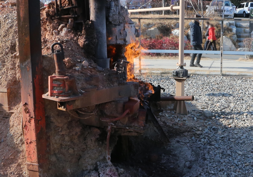 31일 포항시에 따르면 한 공사업체가 2017년 3월 8일 남구 대잠동철길숲에 사용할 지하수 개발을 위해 굴착기로 지하 200m까지 관정을 파던 중 땅속에서 나온 천연가스로 불이 붙었다.