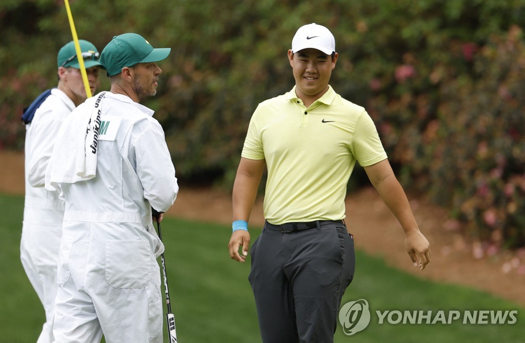 (오거스타[미국 조지아주]=연합뉴스) 김동찬 기자 = 김주형이 남자 골프 시즌 첫 메이저 대회인 제87회 마스터스 토너먼트 1라운드에서 공동 17위에 올랐다.