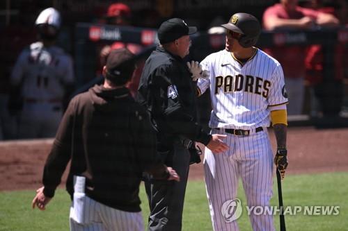 마차도는 5일(이하 한국시간) 미국 캘리포니아주 샌디에이고 펫코파크에서 열린 애리조나 다이아몬드백스와의 경기에서 주심의 '피치 클록' 선언에 항의하다 퇴장 명령을 받았다.