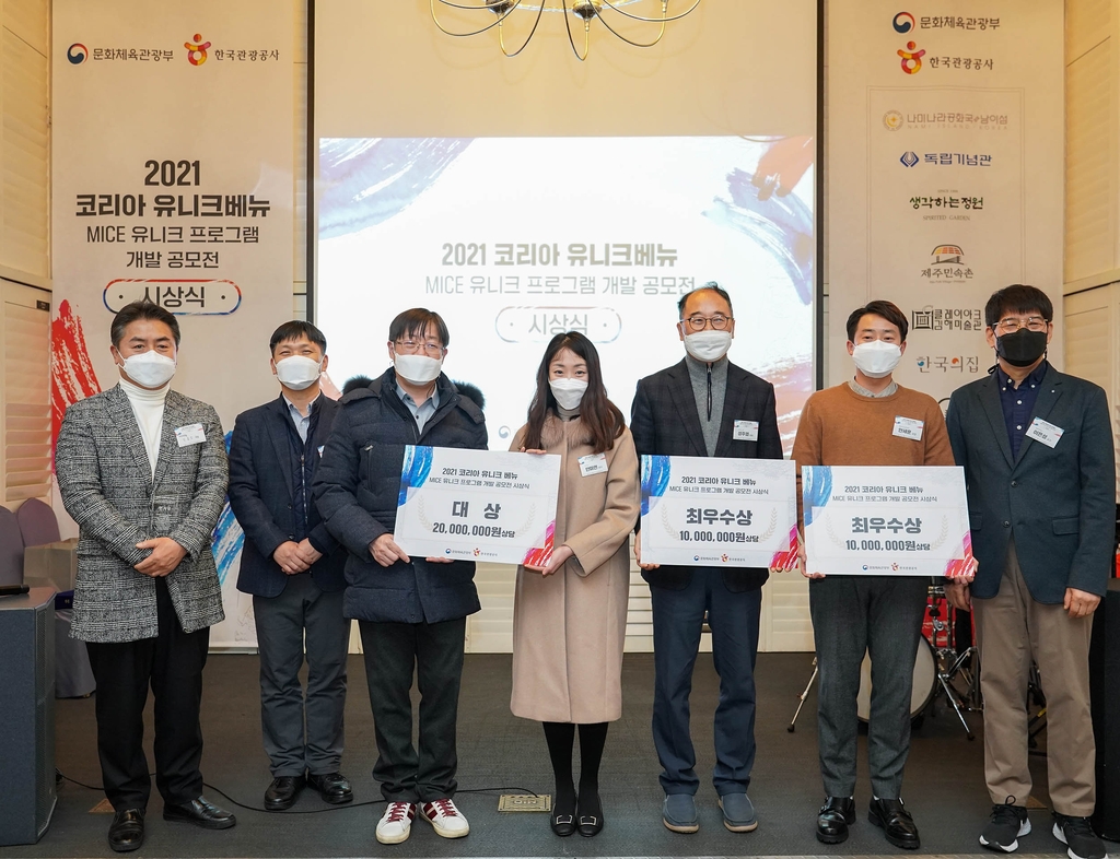 (서울=연합뉴스) 박상돈 기자 = 한국관광공사는 이색 지역회의명소(유니크베뉴)의 체험 프로그램에 대한 공모전을 벌여 3개 수상작을 선정해 시상했다고 13일 밝혔다.