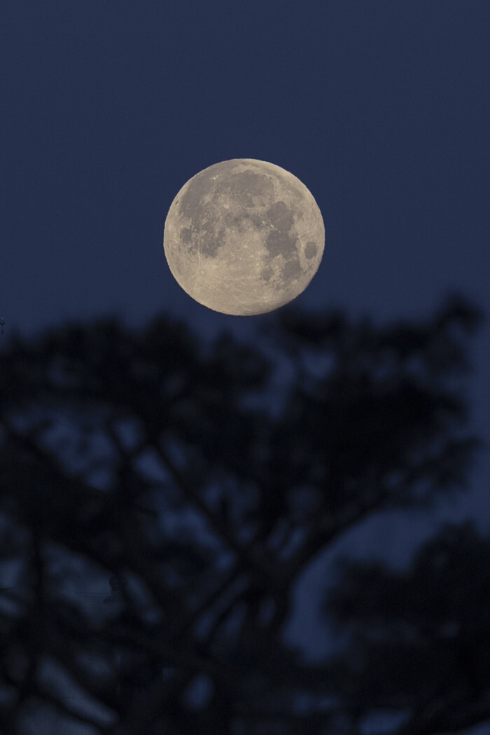The first full moon of the year according to the lunar calendar sets in the sky above the city of Uijeongbu, northeast of Seoul, on Feb. 13, 2025. (Yonhap)