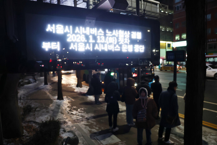 Commuters wait for buses heading for Seoul at a bus stop in Seongnam, just south of Seoul, on Jan. 14, 2025, as unionized intracity bus workers in the capital launched an indefinite strike for the second straight day following the breakdown of their wage hike negotiations with management. (Yonhap)
