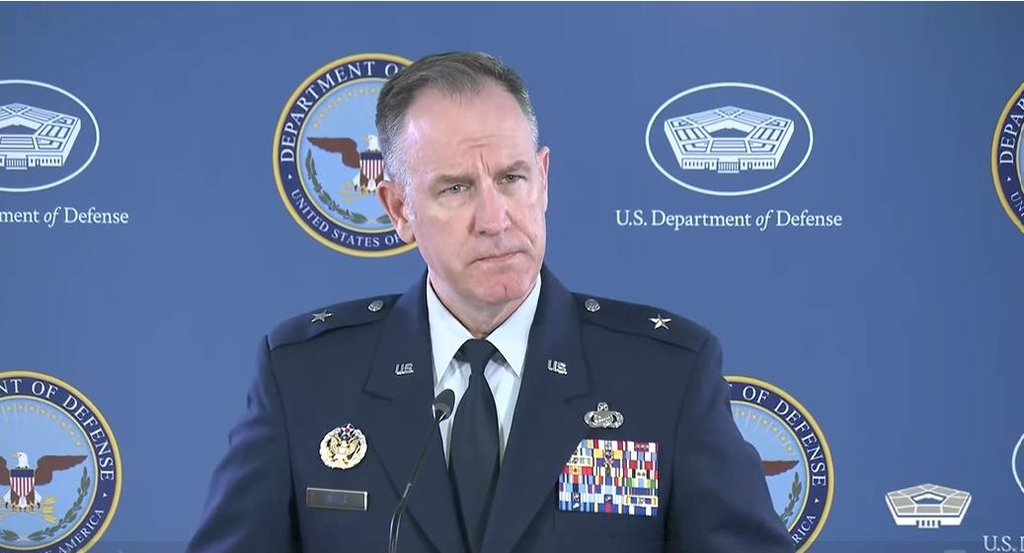 | ▲ Department of Defense Press Secretary Brig. Gen. Pat Ryder is seen taking questions during a daily press briefing at the Pentagon in Washington on March 14, 2023 in this captured image. (Yonhap) |