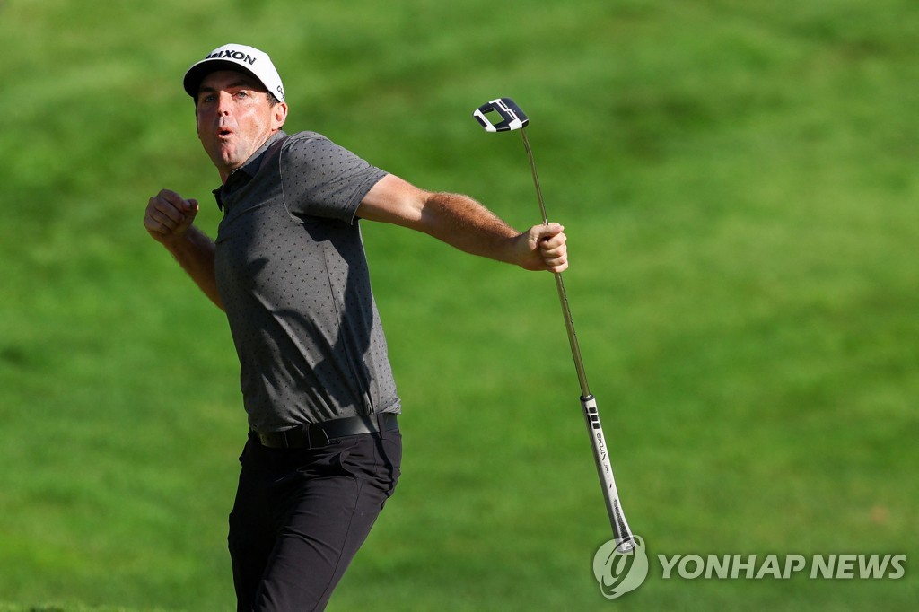 | ▲ 18번 홀 그린에서 우승 확정되자 기뻐하는 브래들리 [AFP=연합뉴스] |