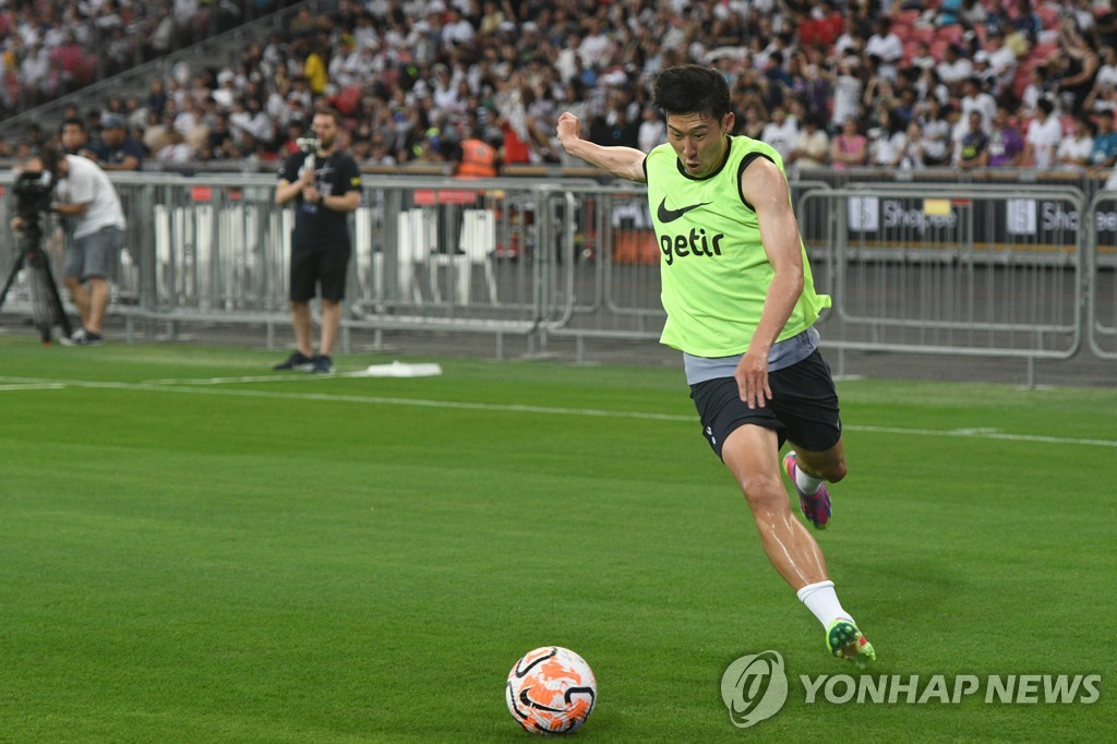 손흥민은 26일 싱가포르에서 열리는 싱가포르팀 라이언시티와 프리시즌 경기 출전을 준비한다.