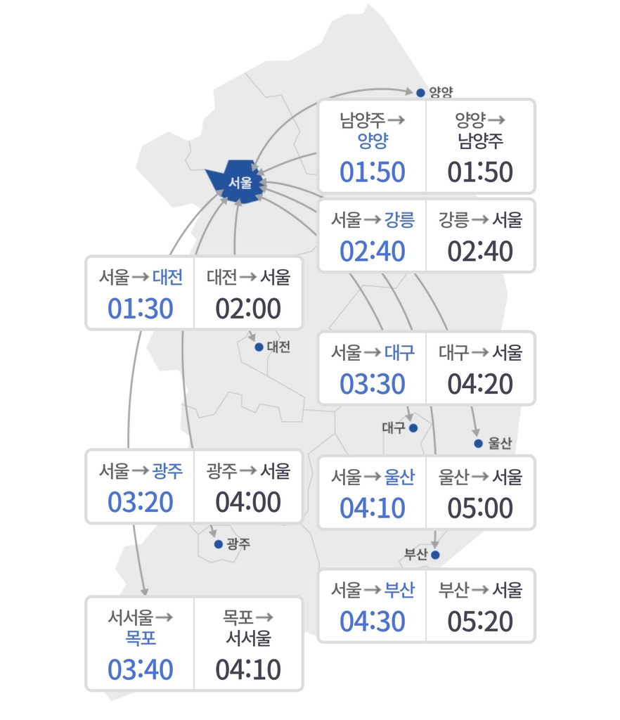 | ▲ 2일 오전 9시 기준 주요 도시∼서울 소요 시간 [한국도로공사 홈페이지 캡처. 재판매 및 DB 금지] |