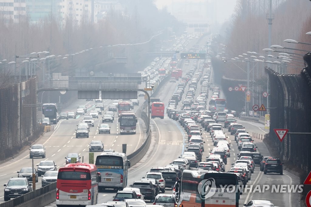 | ▲ 설날 귀경길 정체 시작 설날인 1일 오후 서울 서초구 잠원IC에서 바라본 경부고속도 상행선(왼쪽)과 하행선(오른쪽) 차도에 차량이 점차 늘고 있다. [연합뉴스 자료사진] |