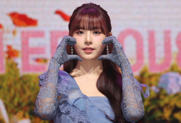 Hana, a member of South Korean girl group Fifty Fifty, poses for a photo during a showcase in Seoul on Sept. 20, 2024, to promote the release of the group's second mini album "Love Tune." (Yonhap)