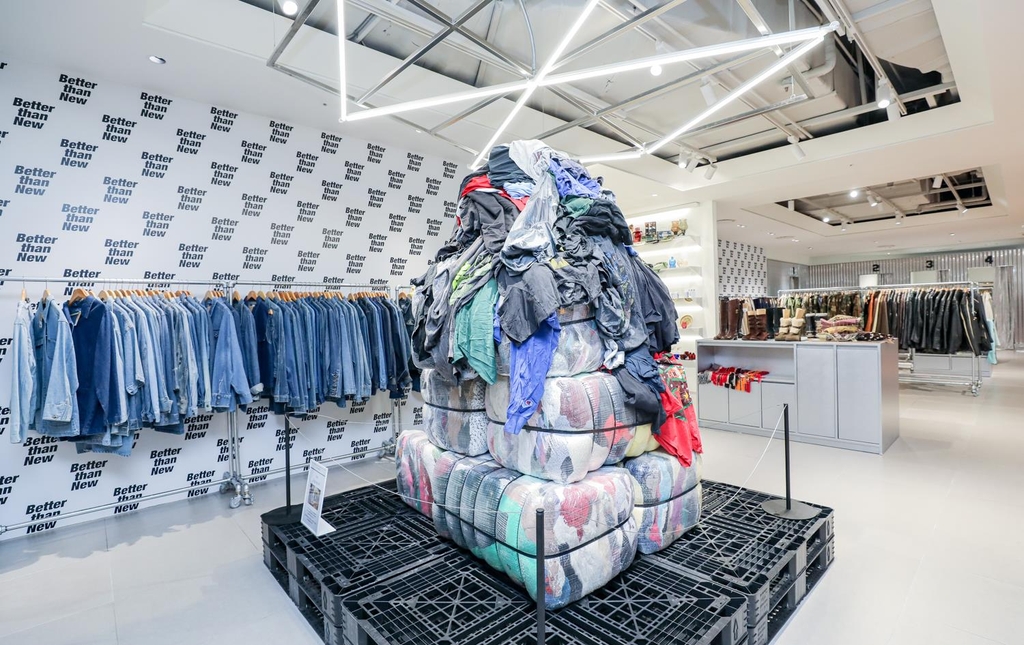 | ▲ '마켓인유' 매장 내 중고 의류를 활용해 '디깅 소비(digging consumtion, 소비자가 선호하는 품목이나 영역에 대해 깊게 파헤쳐 소비하는 현상)'를 형상화한 작품이 전시된 모습[현대백화점 제공. 재판매 및 DB 금지] |