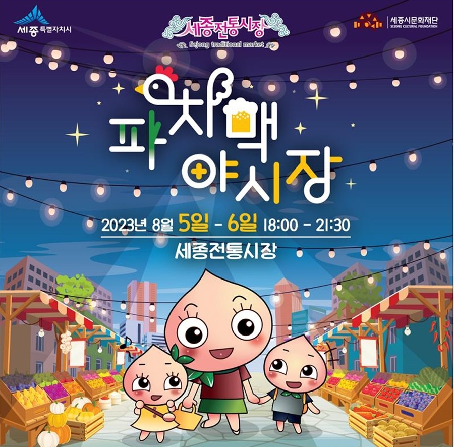 세종시는 제21회 조치원복숭아축제와 연계해 오는 5∼6일 오후 6시부터 9시 30분까지 세종전통시장 내 중앙통에서 '파치맥 야시장'을 개최한다고 1일 밝혔다.