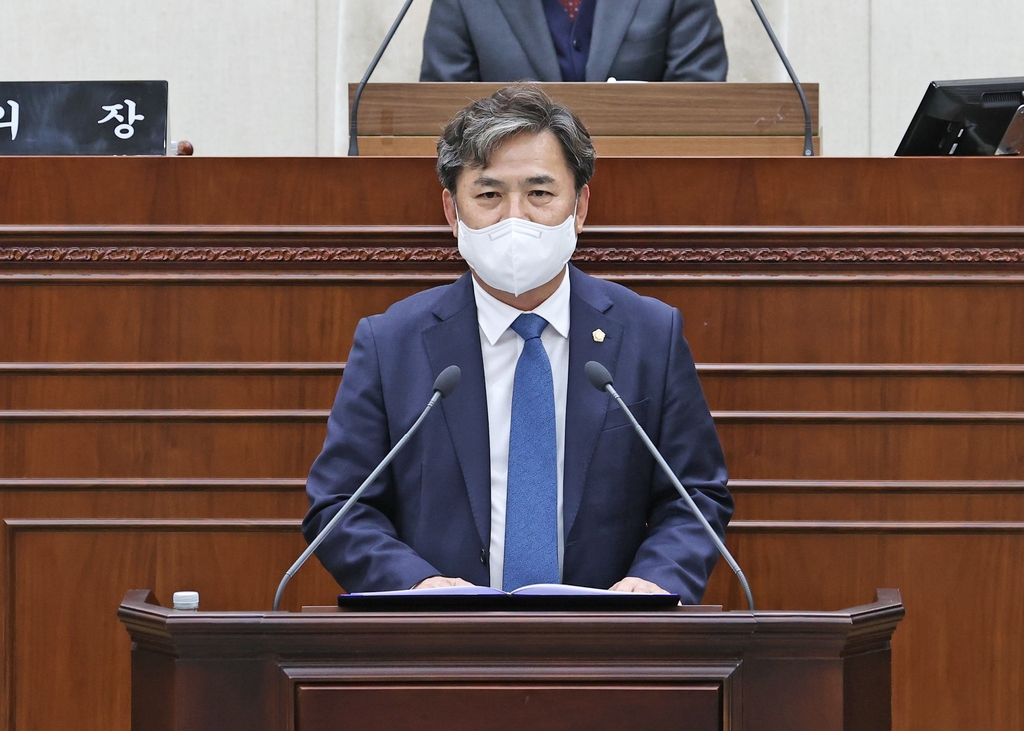 | ▲ 시정 질의하는 김지헌 의원 [원주시의회 제공.재판매 및 DB 금지] |