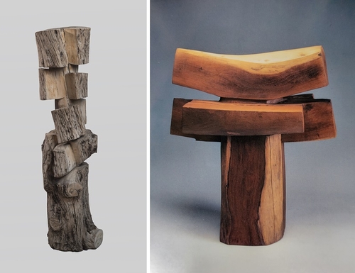 작가가 평생 주력한 매체는 나무였다. 1970년대 중반의 '기원쌓기' 시리즈는 흔히 소원을 빌며 돌을 위로 쌓는 돌쌓기처럼 절단된 면을 쌓아 올리듯 나무를 다듬은 것이다. 아르헨티나 이주 후에는 알가로보나 팔로산토 같은 현지의 단단한 나무들을 이용해 다양한 변주를 시도한다. 1990년대는 날개나 십자가 또는 솟대를 연상시키는 T자 형태의 작품을 자주 했고 2000년 이후에는 남미의 토테미즘에서 영향을 받아 목조각에 색을 더했다.