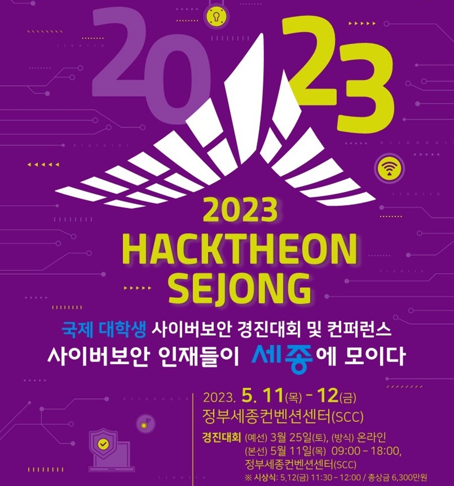 시는 오는 5월 11∼12일 정부세종컨벤션센터(SCC)에서 '2023 핵테온 세종 국제 대학생 사이버보안 경진대회 및 콘퍼런스'를 개최한다고 28일 밝혔다.