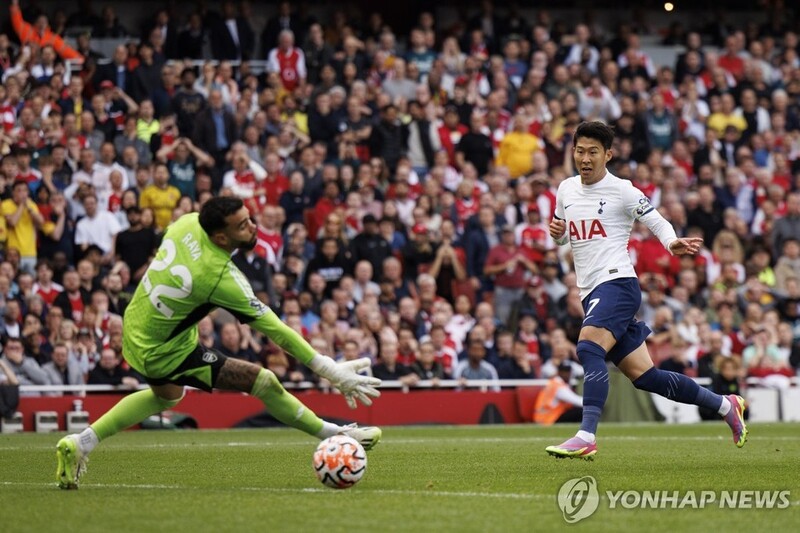 (서울=연합뉴스) 이의진 기자 = 손흥민이 2023-2024시즌 잉글랜드 프로축구 프리미어리그(EPL) 6라운드 아스널과 경기에서 터뜨린 첫 번째 골이 토트넘이 자체 선정한 '9월의 골'로 뽑혔다.