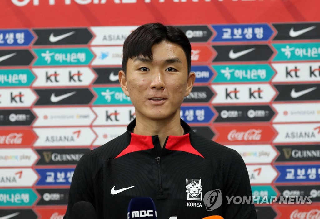 | ▲ 황인범 (대전=연합뉴스) 김준범 기자 = 대한민국 축구대표팀 황인범이 18일 오후 대전 월드컵경기장에서 훈련을 하기 전 취재진 질문에 답하고 있다. 대표팀은 20일 엘살바도르와의 평가전을 치른다.2023.6.18 psykims@yna.co.kr |