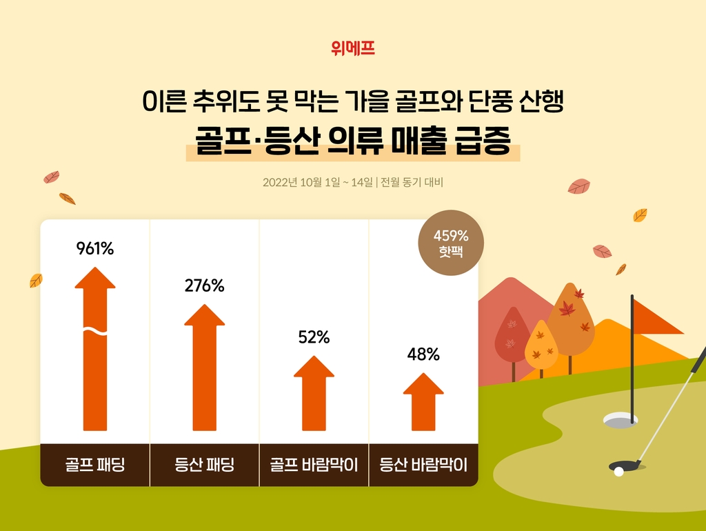 위메프는 이른 추위에도 실외활동을 즐기고자 하는 소비자들로 인해 골프·등산 패딩 판매량이 늘었다고 밝혔다.