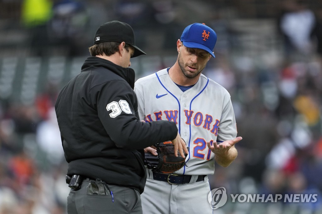 (서울=연합뉴스) 김경윤 기자 = 뉴욕 메츠의 베테랑 강속구 투수 맥스 셔저(38)가 목 경련 증세로 마운드에 서지 못했다.