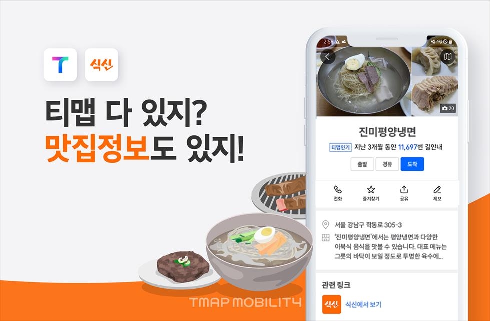 전국 음식점 정보, 티맵에서 본다…맛집 앱 '식신'과 연동