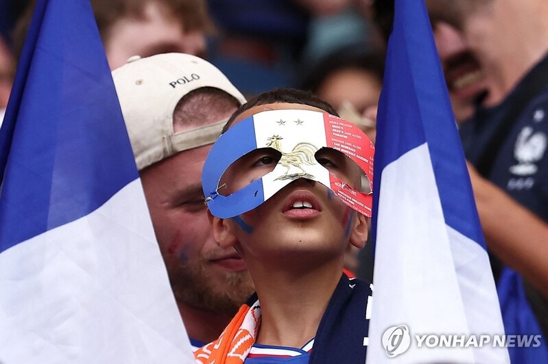 | ▲ 킬리안 음바페의 안면 보호대를 따라 착용한 프랑스 축구팬 [AFP=연합뉴스] |