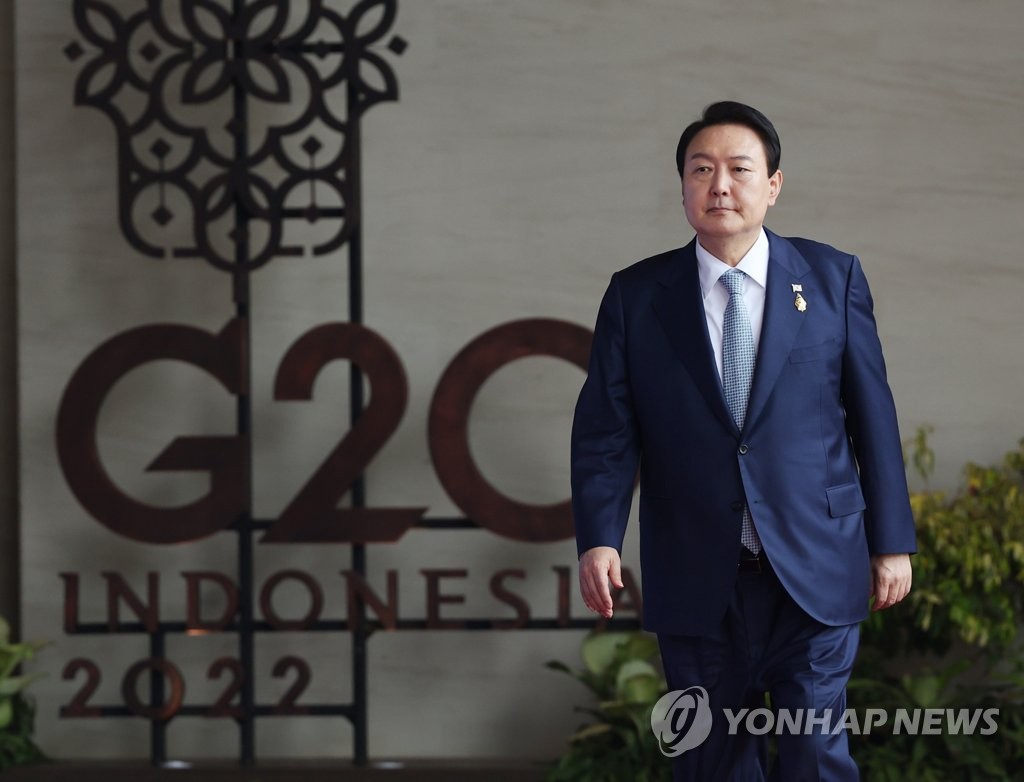 | ▲ South Korean President Yoon Suk-yeol attends a Group of 20 summit at the Apurva Kempinski in Bali, Indonesia, in this file photo taken Nov. 15, 2022. (Yonhap) |