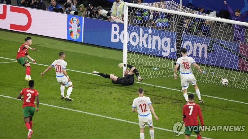 반격에 나선 포르투갈은 7분 뒤 누누 멘데스(파리 생제르맹)가 골 지역 왼쪽에서 헤더로 떨어뜨린 볼을 체코 콜키퍼가 쳐낸 게 앞에 있던 수비수의 발에 맞고 자책골이 되면서 힘겹게 승부의 균형을 맞췄다.