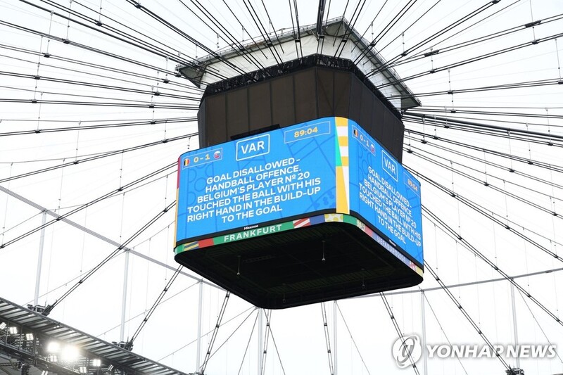 | ▲ VAR로 벨기에의 골취소를 알리는 전광판 [로이터=연합뉴스] |