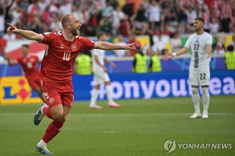 에릭센은 17일(한국시간) 독일 슈투트가르트 아레나에서 열린 슬로베니아와의 유로 2024 조별리그 C조 1차전에 선발 출전, 전반 17분 선제골을 터뜨렸다.