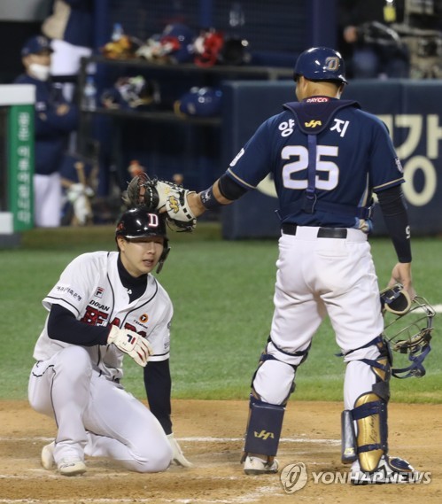 (서울=연합뉴스) 하남직 기자 = 정규시즌에서 좀처럼 뛰지 않던 두산 베어스는 준플레이오프(준PO)와 PO 6경기에서 도루 7개를 성공하며 상대 허를 찔렀다.