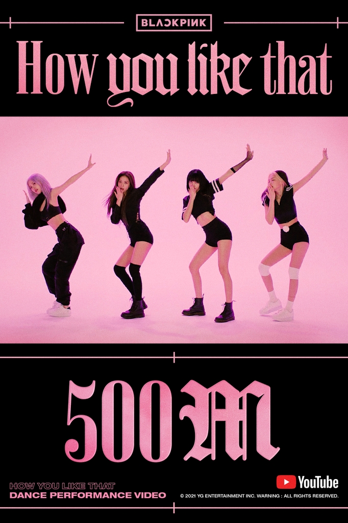 소속사 YG엔터테인먼트에 따르면 지난해 7월 6일 공개된 '하우 유 라이크 댓' 안무 영상은 약 183일 만인 6일 오전 7시 5분께 유튜브 조회 수 5억 회를 넘어섰다.