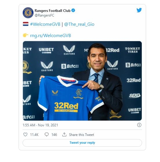 | ▲ 스코틀랜드 레인저스 사령탑으로 선임된 판브롱크호르스트. [레인저스 구단 트위터. 재판매 및 DB 금지] |