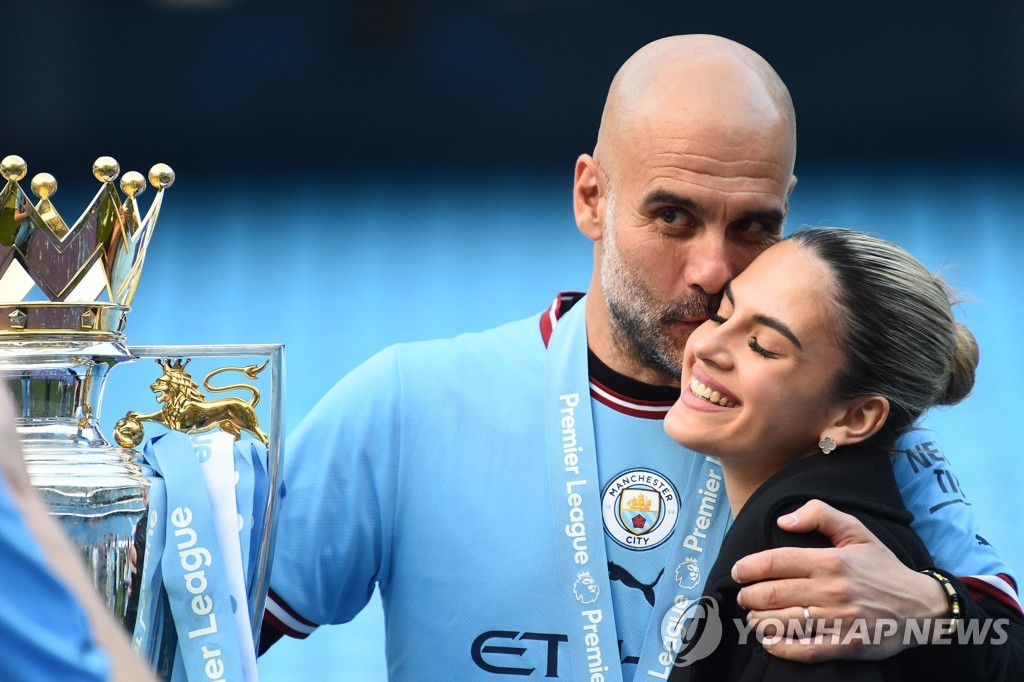 | ▲ 시상식에서 우승 트로피를 들고 딸과 기뻐하는 페프 과르디올라 감독 [EPA=연합뉴스] |